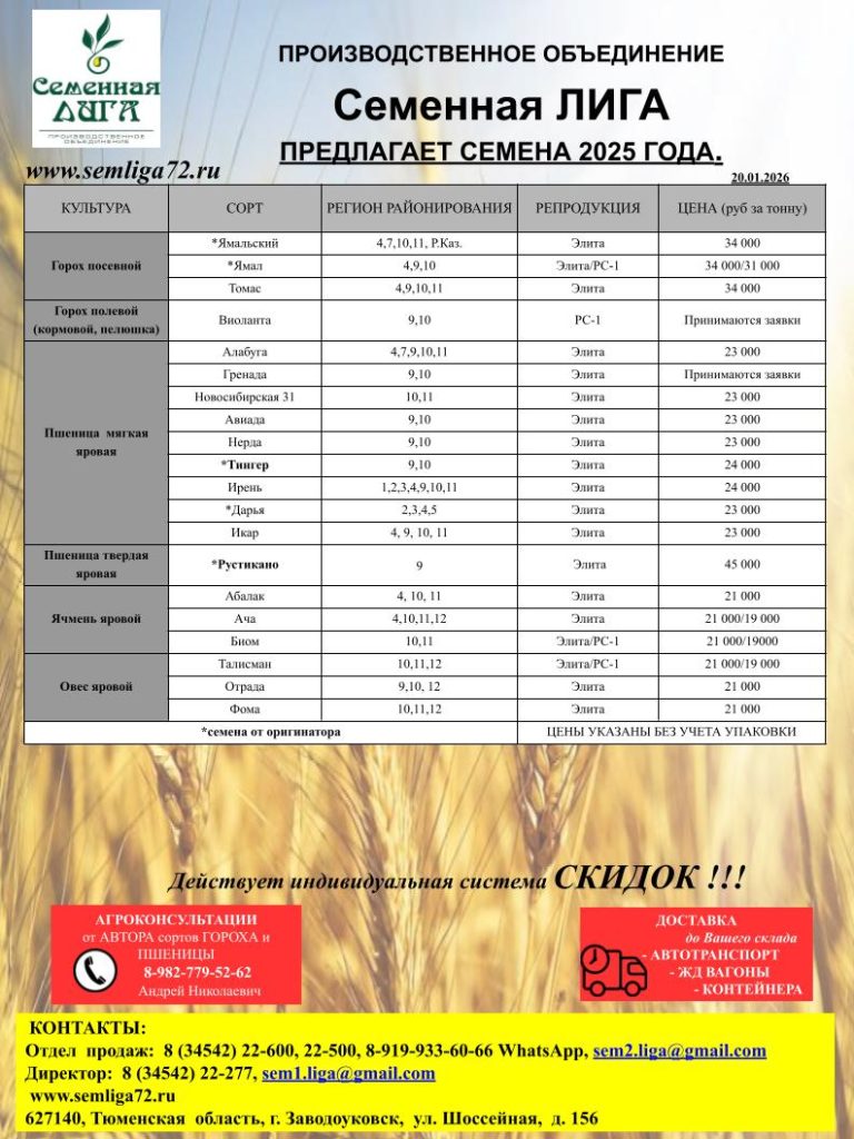 Бесплатные Агроконсультации от Автора сортов гороха и пшеницы.