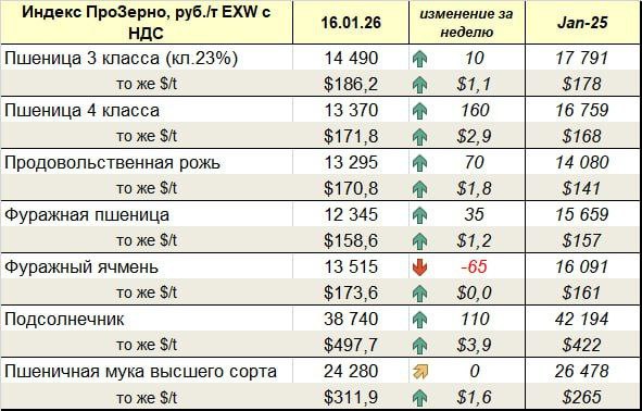 (Таблица ПроЗерно) Праздники закончились, рынок немного оживился. Автор: Telegram-канал "Сельский час" Источник новости
