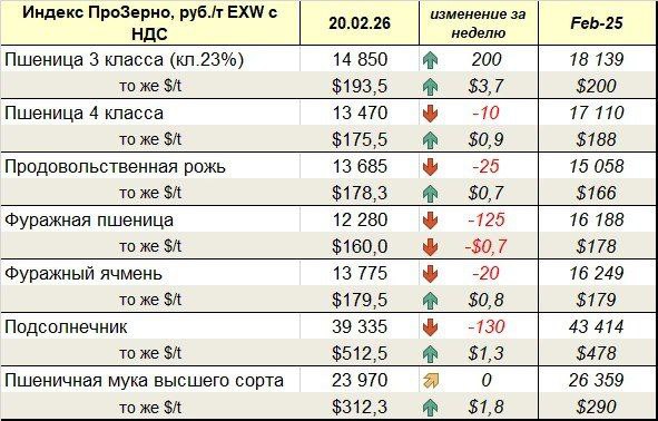 Американская история с ухудшением прогнозов урожая на 2026 год и скачком цен на бирже пока не докатилась до нас. Экспортные цены пшеницы 12,5% в среднем прибавили +$1 до 233$/t FOB Черное море. Экспортные цены ячменя стабильны на 242$/t FOB и кукурузы на 222$/t FOB Черное море. Закупочные цены гороха в портах без изменений 16000 руб./т СРТ без НДС.