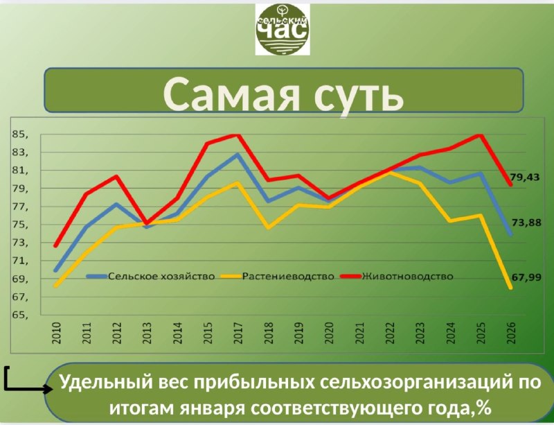 В 2025 году доля прибыльных предприятий составила по сельскому хозяйству 78,63%, в растениеводстве — 74,11%, а в животноводстве…