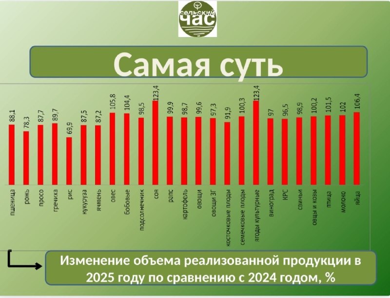 Рекорды в производстве есть, а роста реализации не просматривается! Лишь соя, яйца, овес, бобовые и ягоды (производство почти все в хозяйствах населения) дали ощутимый рост реализации! Так что высокий урожай не конвертировался в высокую выручку!