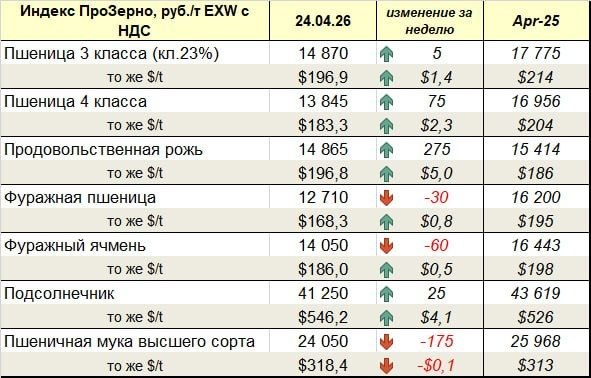 Цены ФОБ Черное море $239 Russian Milling Wheat $240 Russian Barley $228 Russian Corn Автор: Telegram-канал "Сельский час" Источник новости