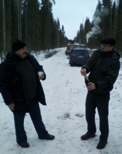 Первый вопрос о ходе строительства подъездной дороги к клюквенной плантации долго обсуждать не пришлось. Данные постоянного контроля с применением видеосъемки с квадрокоптера, а также публикуемые на сайте кооператива подробные отчеты о ходе работ полностью совпали с увиденным. К тому же длинная вереница легковых машин, которая спокойно проехала два с половиной километра по новой дороге (торжественно запустили три месяца назад), и вовсе не требовала дополнительных пояснений. Прибывший на совещание председатель СПК «Архангельская клюква» Николай Склепкович первым делом направился к экскаватору, который в ожидании замены порвавшегося о мерзлую землю ковша склонил в поклоне свою мощную стрелу. Руководитель работ Дмитрий Лихачев хоть и немного расстроен неплановым простоем, но спокойно, по-деловому докладывает, что на доставку нового ковша и его установку уйдет 27 часов, а в это время у рабочих — банный день. Работы по строительству плантации ведутся по согласованному плану, и первая партия саженцев будет высажена на чековые поля уже в 2017 году.
